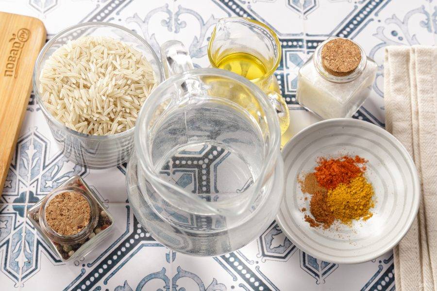 Подготовьте все ингредиенты по списку. У меня рис басмати, но можете заменить другим, желательно длиннозёрным.