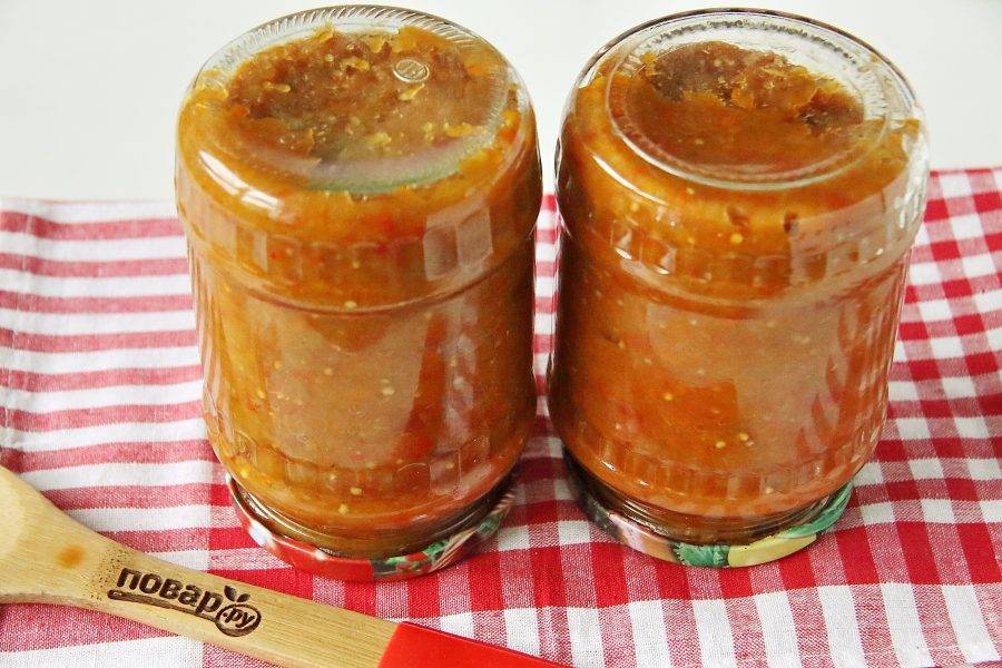 Разложите икру сразу же по стерилизованным банкам. Закатайте, переверните вверх дном, укутайте и оставьте до остывания.