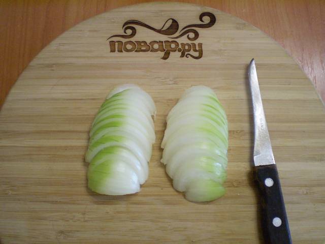 5. Лук солим, перчим и жарим на 1 ст.л масла до мягкости.
