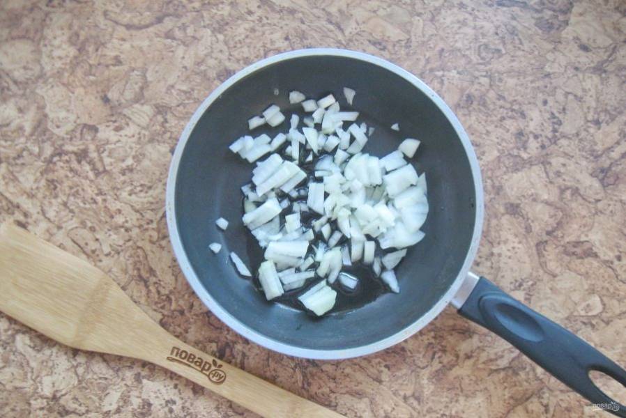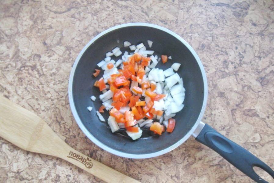 Болгарский перец очистите, помойте и мелко нарежьте. Добавьте к луку.