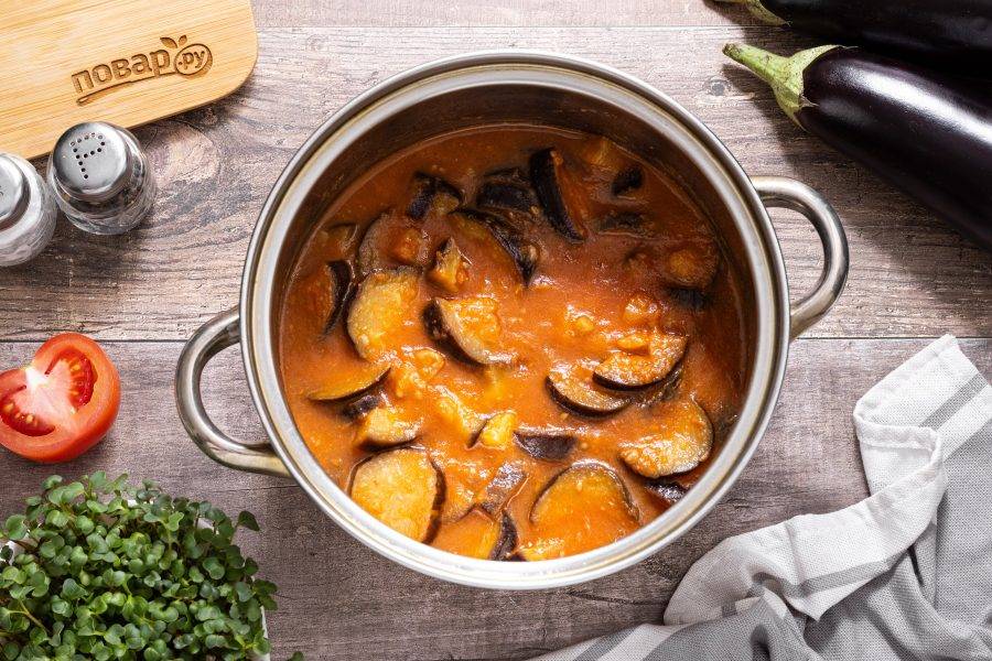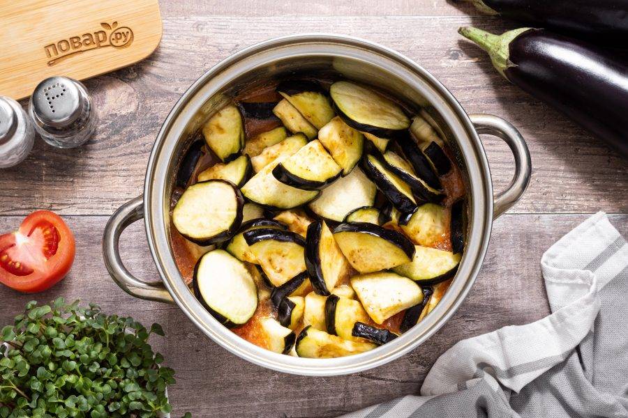 Добавьте баклажаны в кастрюлю.