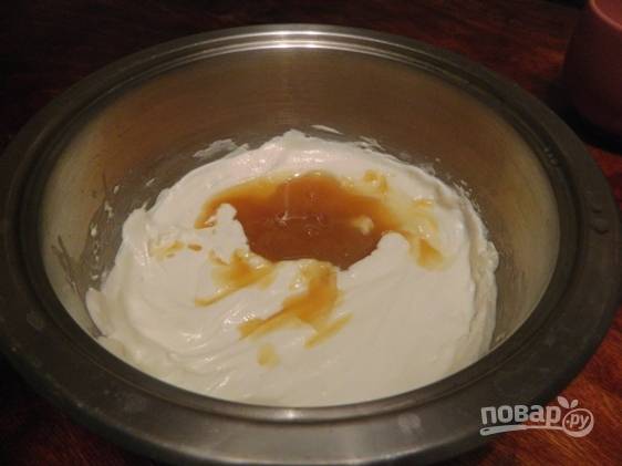Затем добавляем мед и перемешиваем венчиком до однородного состояния.