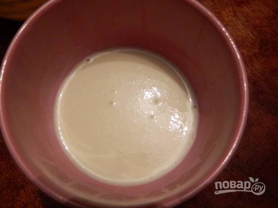 В небольшой посуде смешаем молоко и муку, хорошо перемешаем, чтобы не было комочков.