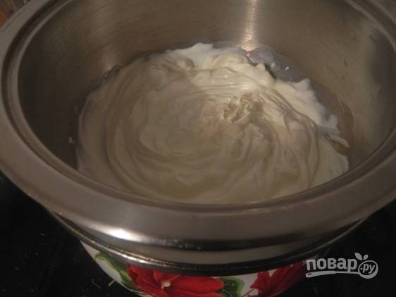 Сметану выливаем в сотейник и ставим на водяную баню минут на 6-7.