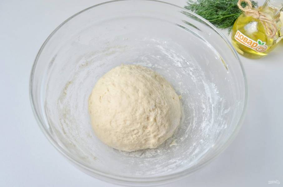 4. Всыпайте порциями просеянную муку, замешивайте тесто. Может понадобиться от 3 до 4 стаканов муки, но не стоит слишком крутым делать тесто, оно должно быть мягким и воздушным.