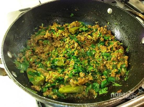 Добавляем мелко нарезанную зелень кинзы.