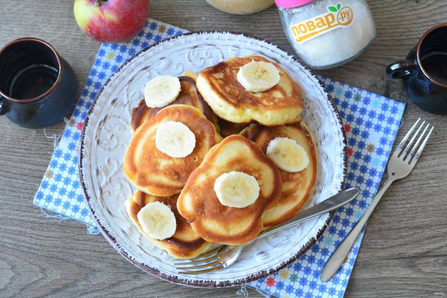 В горячем виде подавайте оладьи к столу. Приятного аппетита!