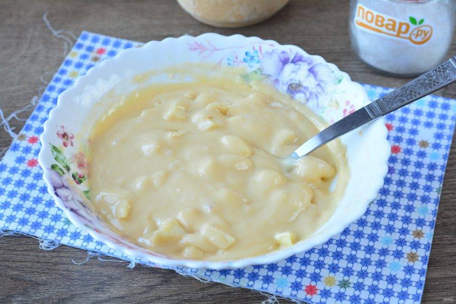 Перемешайте, чтобы фрукты равномерно распределились в тесте.