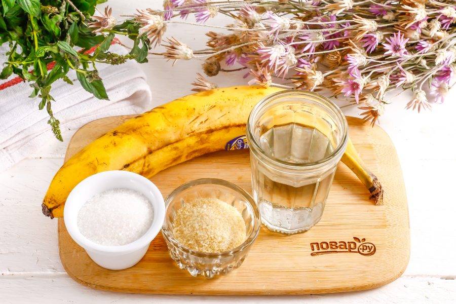 Банан очистите от кожуры, выложите в казан или ковш, помните вилкой. Если фрукт крупный, то используйте один, если мелкие, то два. Всыпьте сахарный песок и влейте лимонный сок.