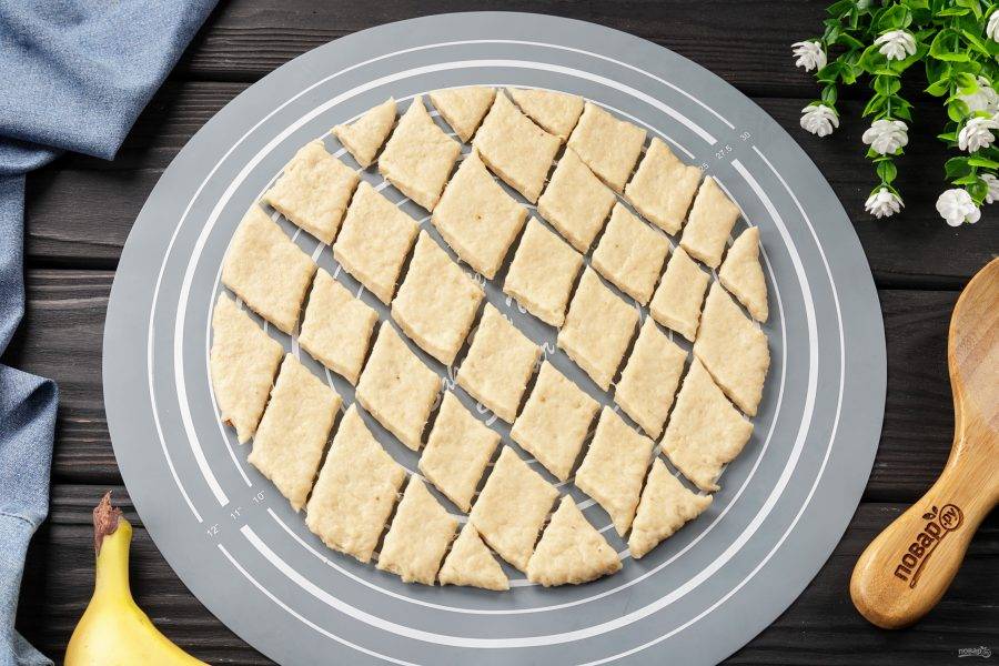 Разрежьте тесто ножом или фигурным валиком. Можно выдавить фигурки при помощи специальных формочек.