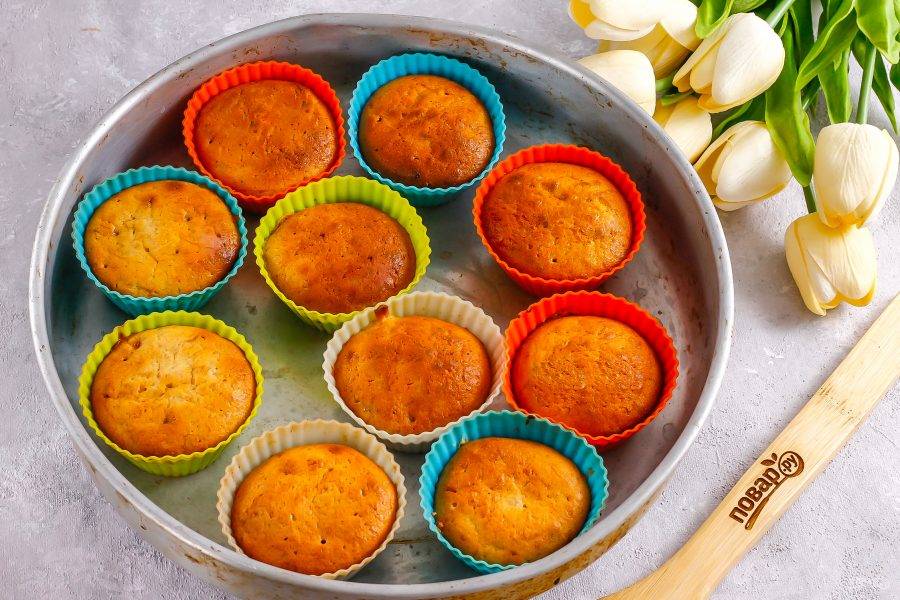 Испеките кексы в духовке примерно 15-20 минут до румяности. Затем извлеките и дайте остыть.