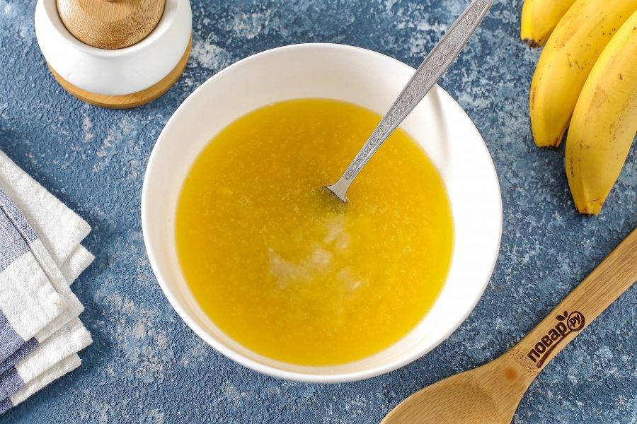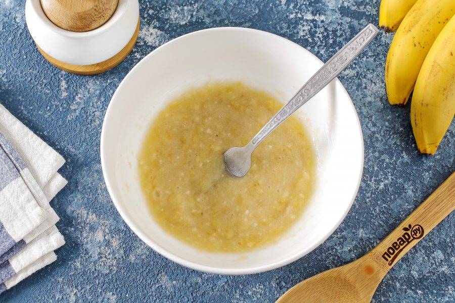 Банан почистите и разомните мякоть вилкой.