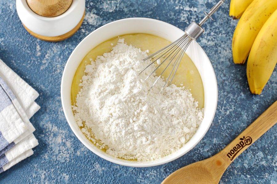 Перемешайте и добавьте муку.