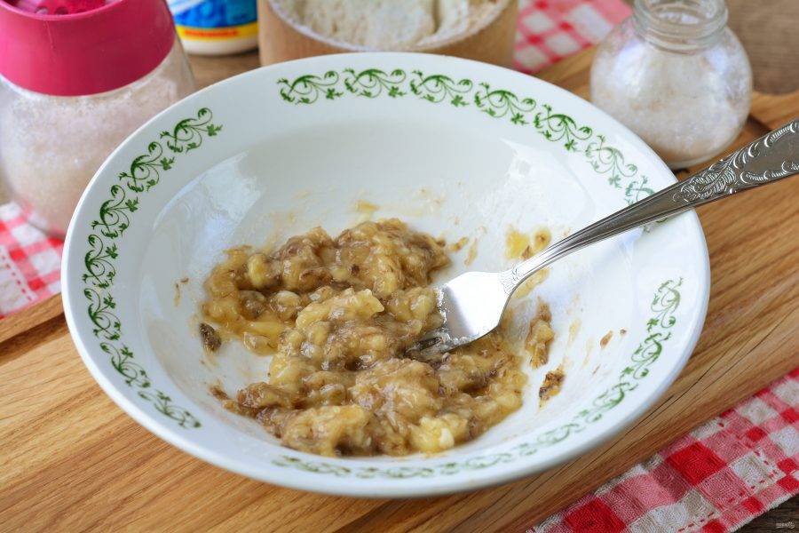 Почистите спелый и мягкий банан, разомните его вилкой до состояния пюре.