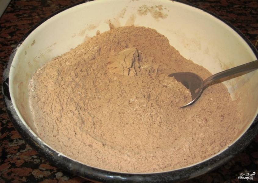 Смешайте мучную смесь и масляную, чтобы не было крупных комочков.