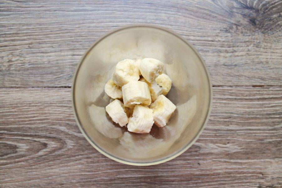 Бананы очистите и порежьте на кусочки, выложите в чашу блендера.