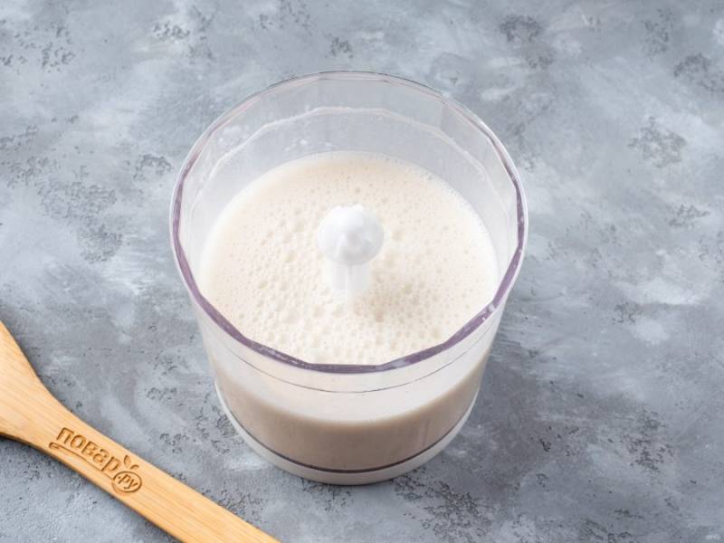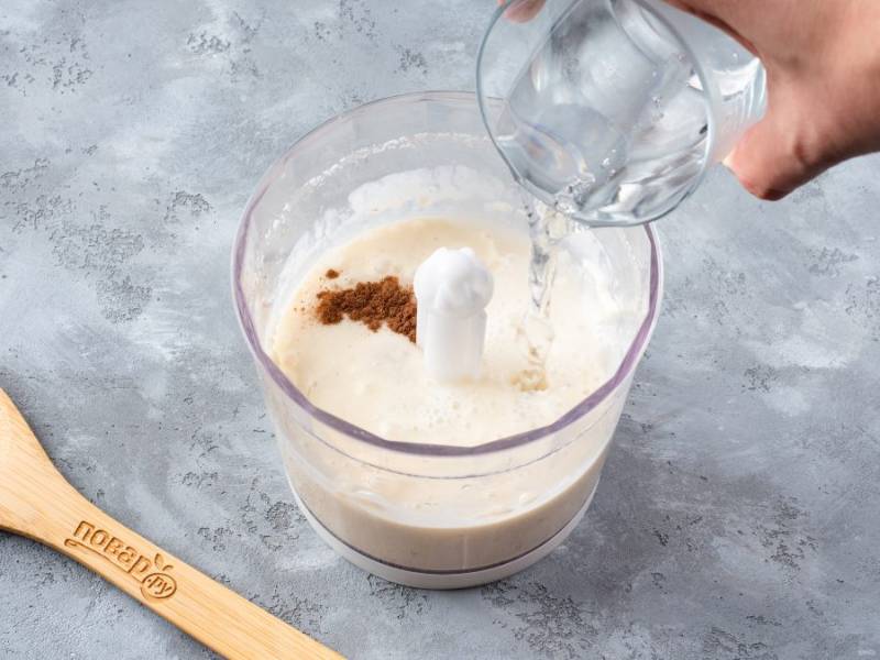 Затем добавьте мускатный орех и ледяную воду. Взбейте.