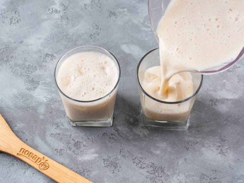 Классика жанра - молочный коктейль с бананом. Ничего лишнего: только молоко, бананы, замороженные ягоды и немножко сахара.