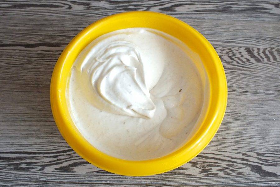 Взбейте миксером в течение 3-4 минут, на средней скорости. Полученная масса должна быть густой, хорошо держать форму.
