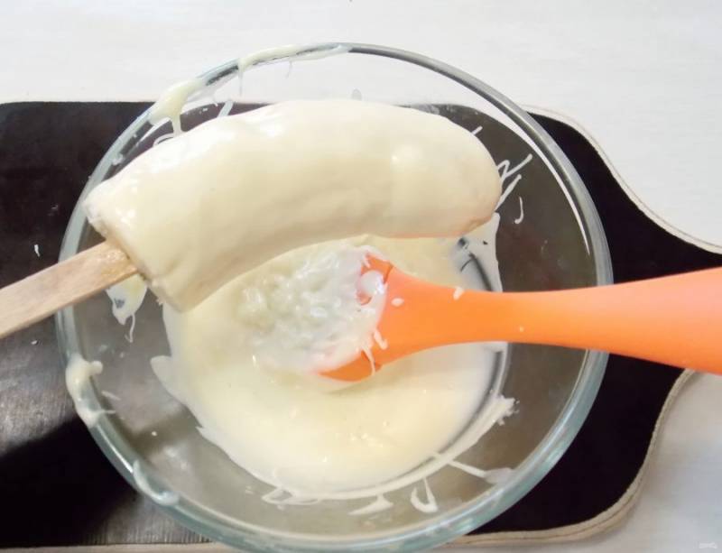 Нанесите шоколад на бананы со всех сторон при помощи кисточки.