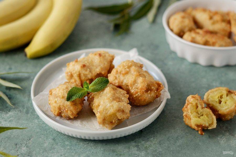 Очень простой десерт, который готовится за считанные минуты. Подавайте его только после остывания. Выбирайте спелые бананы без повреждений. Рассказываю о том, как приготовить бананы в кляре простые.