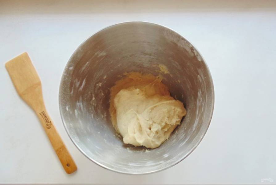 Выложите тесто в миску, накройте пищевой пленкой и поставьте в теплое место. Через час-полтора оно увеличится в объеме.