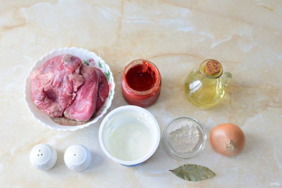 Чтобы приготовить бефстроганов, подготовьте необходимые ингредиенты.