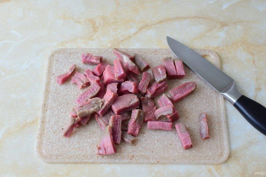 Бефстроганов — популярное, сытное и аппетитное мясное блюдо. Как правило, его готовят из мяса говядины. Чтобы мясо было легче нарезать, можно его слегка подморозить.