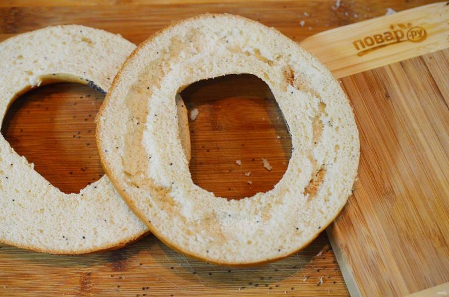 Бейгл или бублик разрежьте вдоль пополам.
