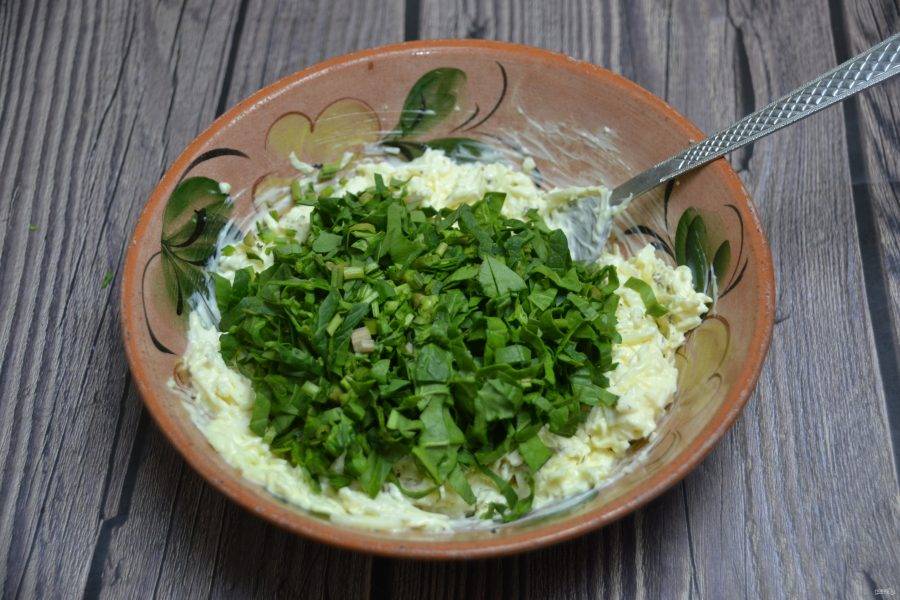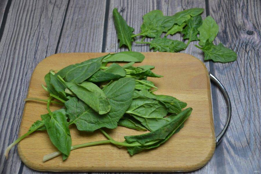 Оставьте несколько цельных листочков шпината, остальной шпинат измельчите.