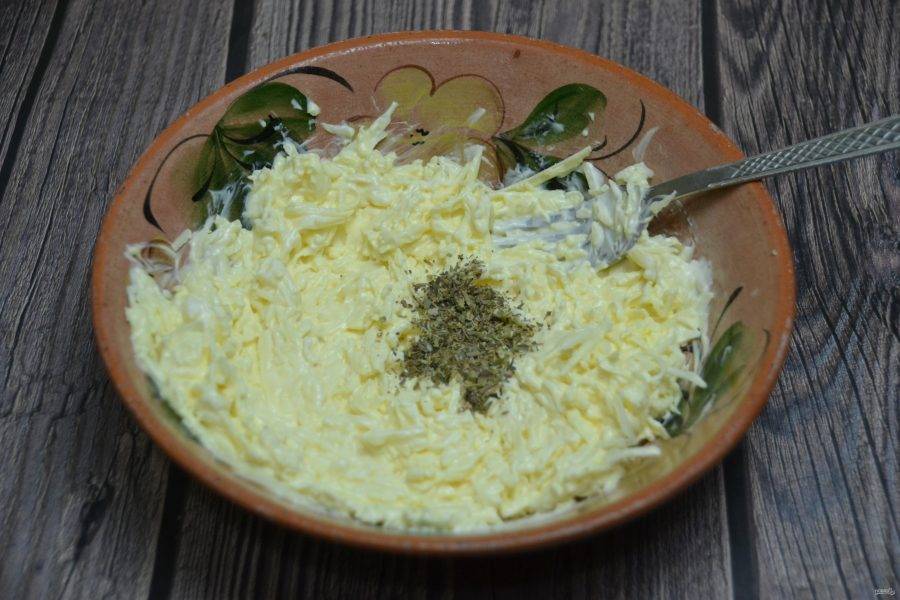 Хорошо размешайте, добавьте смесь сухих итальянских трав.