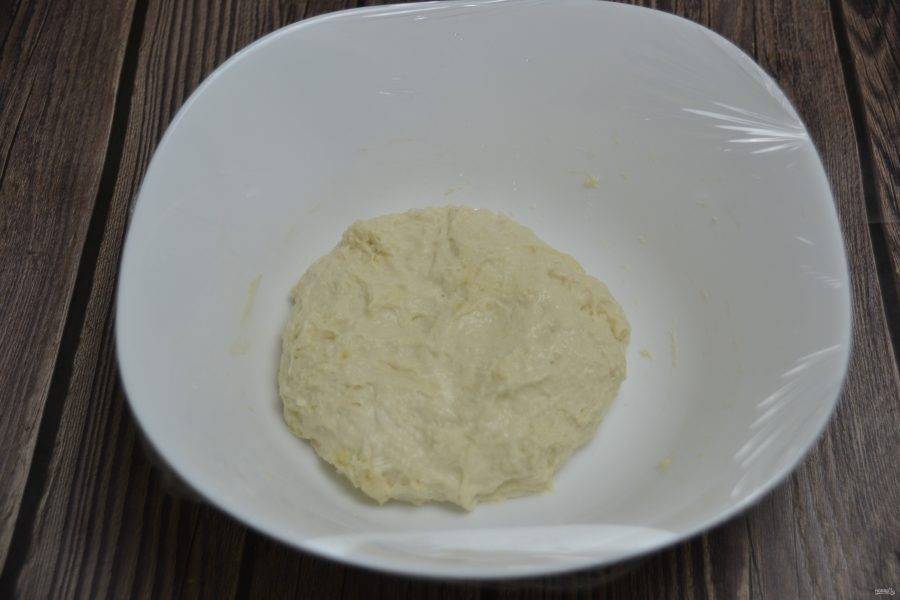 Замесите тесто, вымешивайте минут 5, накройте пленкой, дайте тесту расстойку 1-1,5 часа.