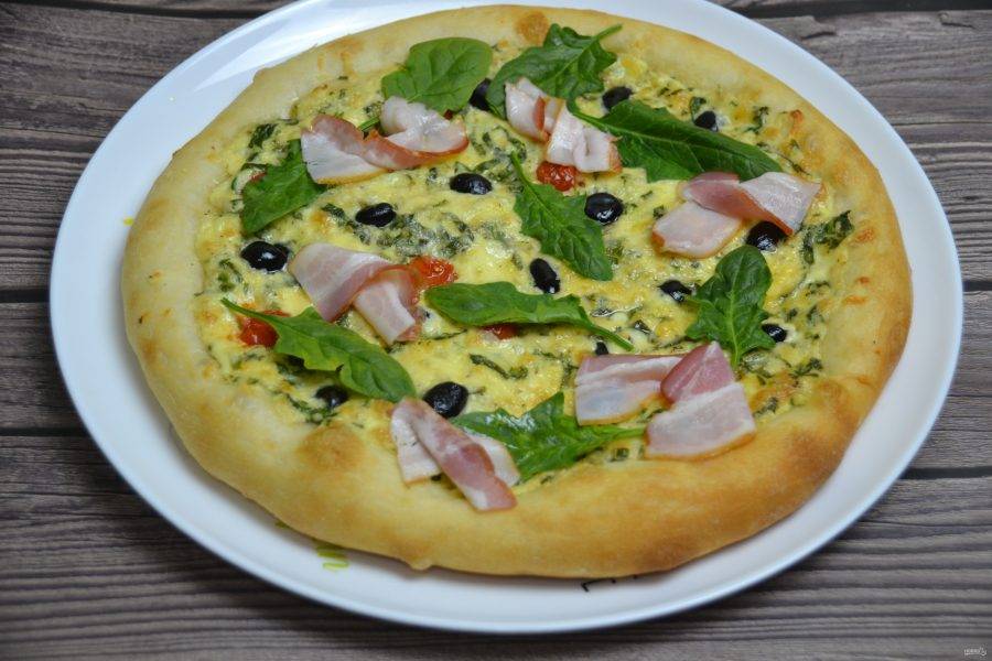 При желании можно добавить на пиццу ломтики бекона. Приятного аппетита!