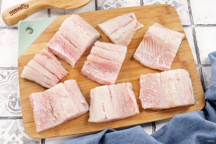 Нарежьте подготовленное филе на порционные кусочки.