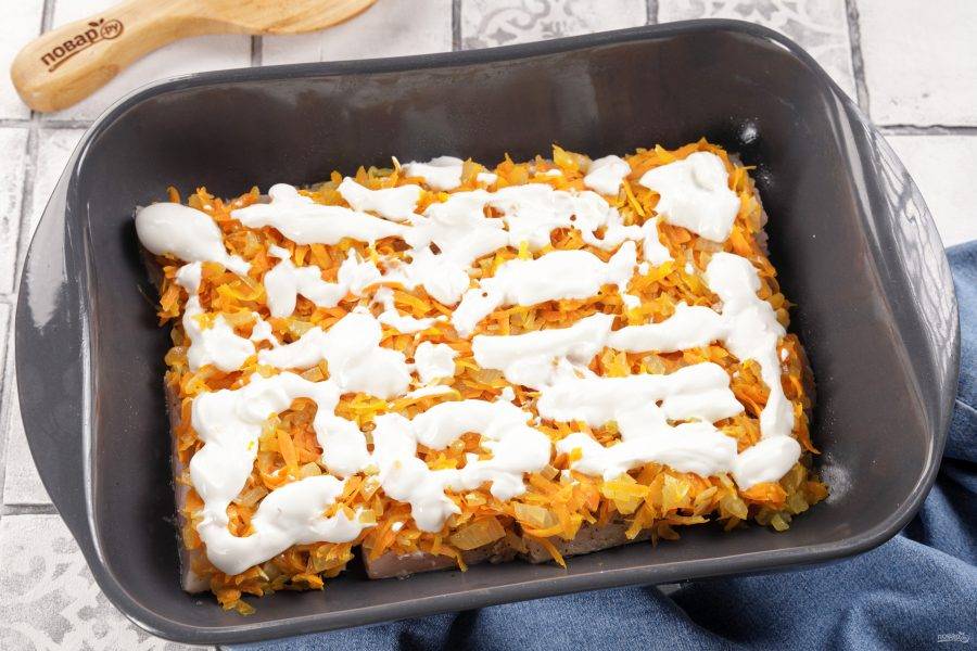Сверху распределите морковно-луковую смесь.