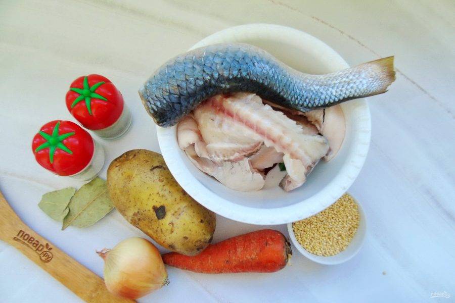 Доведите рыбу с водой до кипения, после огонь убавьте, снимите пену. Готовьте бульон с приоткрытой крышкой кастрюли на самом минимальном огне 25-30 минут.