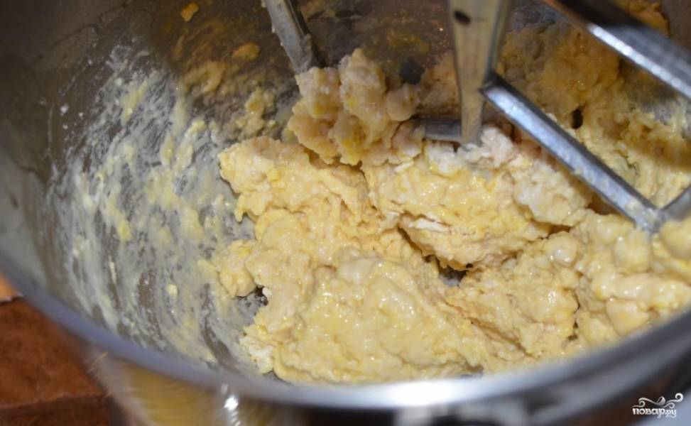 Замесить тесто с яйцами, топленным маслом,ванилин. Замесить тесто.