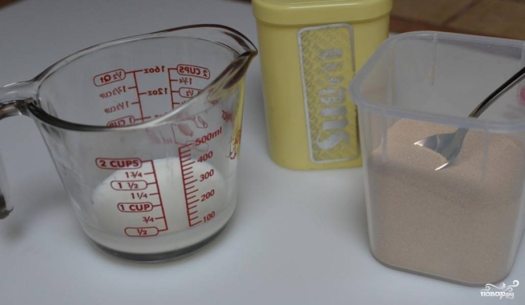 - Сахар 3 ст. ложки для разведения дрожжей