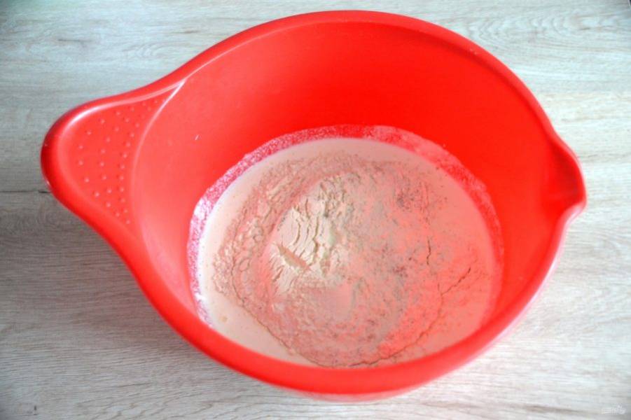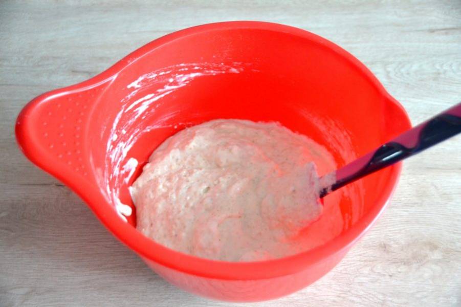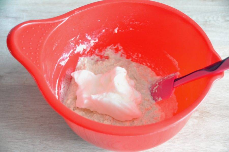 В 2-3 приема выложите взбитые белки в тесто, аккуратно вмешайте белки в тесто.