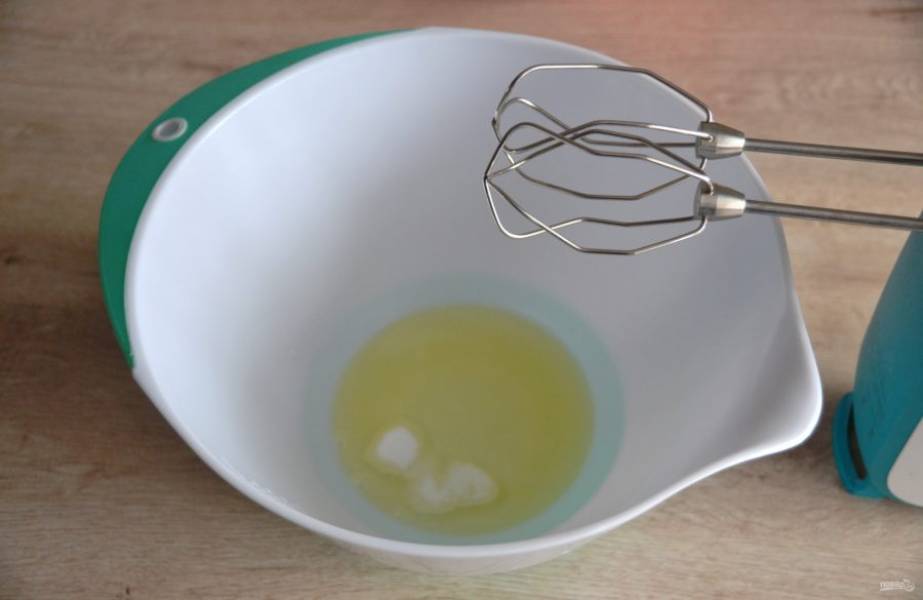 Добавьте к белкам 1 ч.л. соли, взбейте в пышную массу.