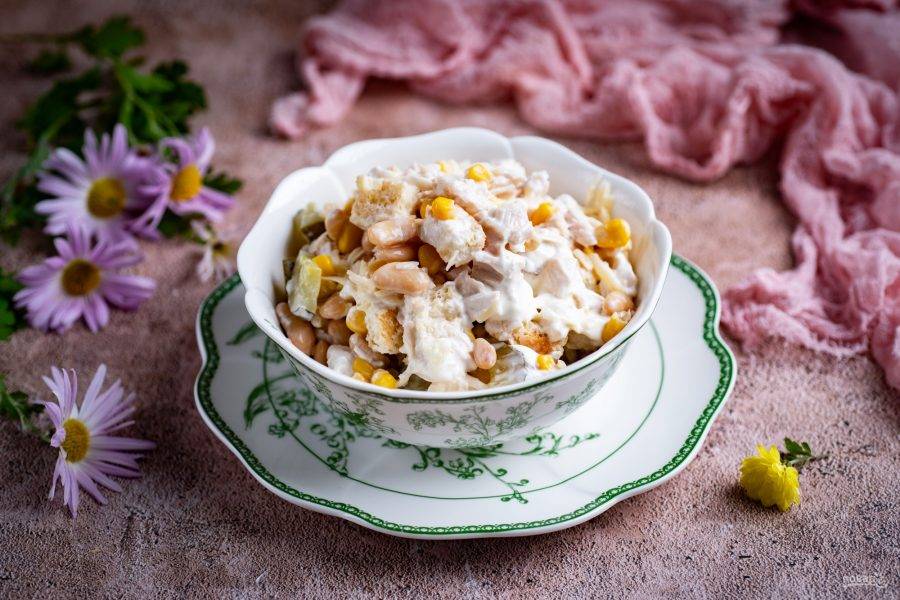 Если в вашем рационе не хватает белка, то предлагаю вашему вниманию рецепт, как приготовить белковый салат из куриной грудки и консервированной фасоли.