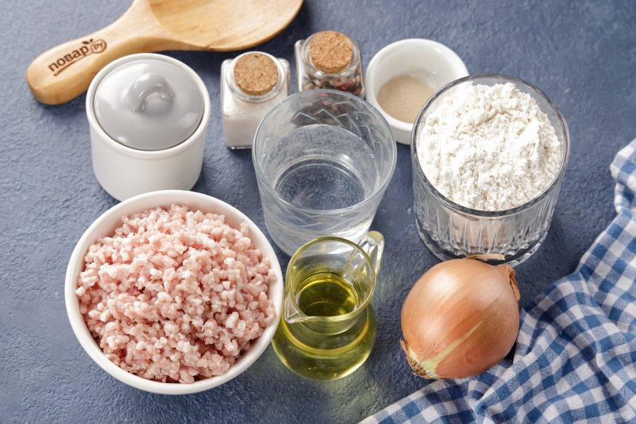 Подготовьте все ингредиенты по списку. Фарш лучше всего брать смешанный и пожирнее.