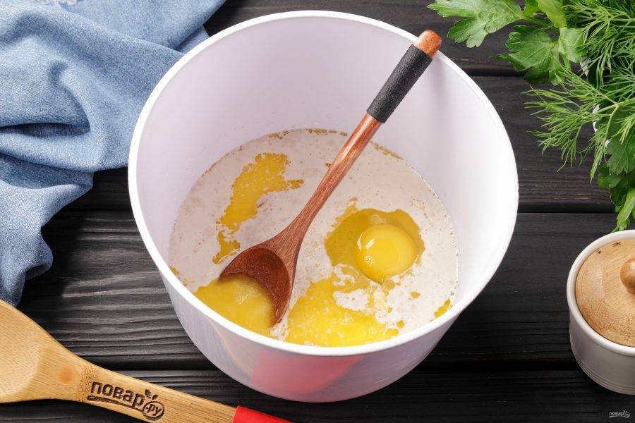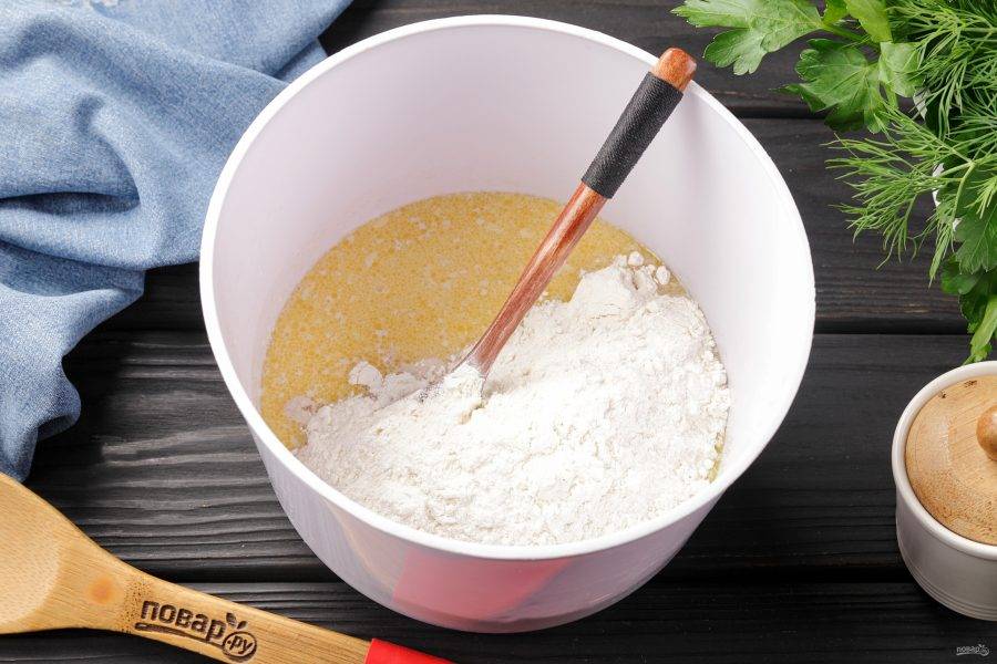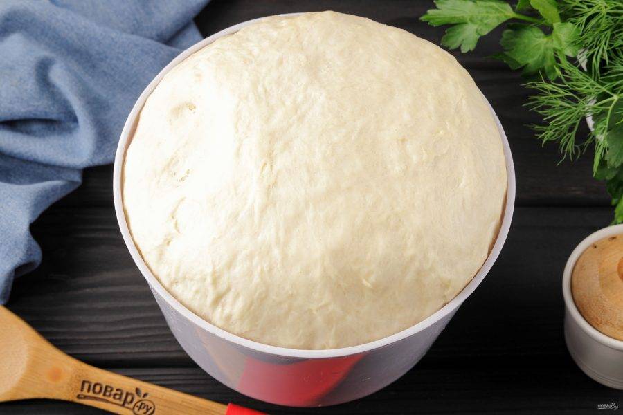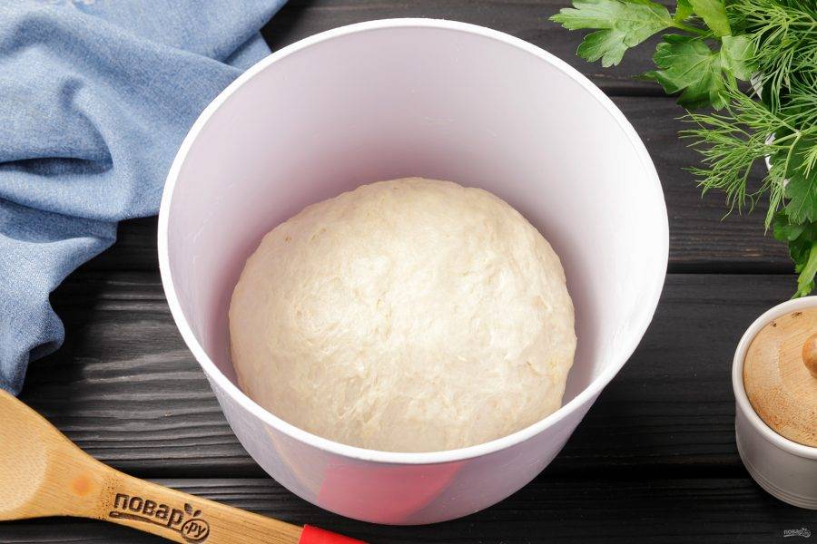 Замесите эластичное и мягкое тесто. Соберите в шар, накройте миску полотенцем и поставьте в тёплое место на 1-1,5 часа.