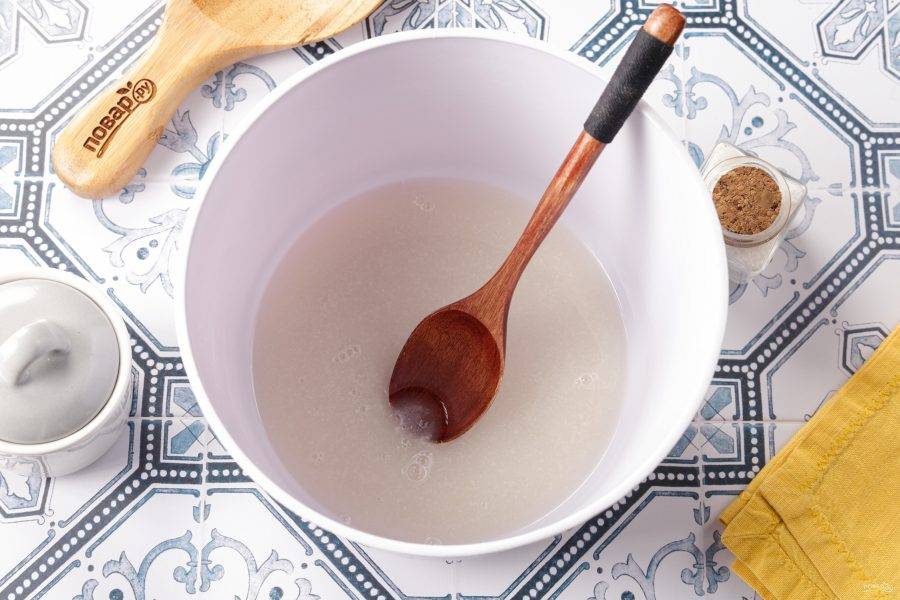 В глубокой миске соедините тёплую воду, сахар и дрожжи. Перемешайте и дайте постоять 10-15 минут.