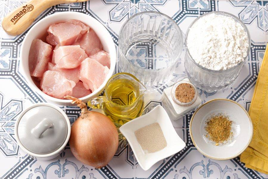 Подготовьте все ингредиенты по списку. Фарш можно взять покупной, но я рекомендую приготовить самостоятельно, так получится намного вкуснее. У меня сегодня будет фарш из грудки.