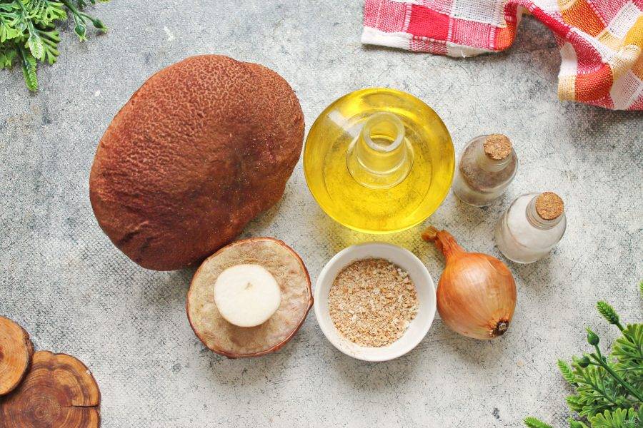 Подготовьте все необходимые ингредиенты для приготовления белых грибов жаренных. Репчатый лук почистите и сполосните.