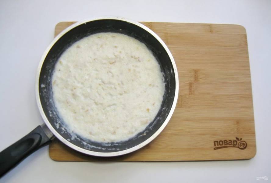 Варите крошки в молоке, постоянно перемешивая, чтобы они не пригорели, до однородной, густой консистенции.