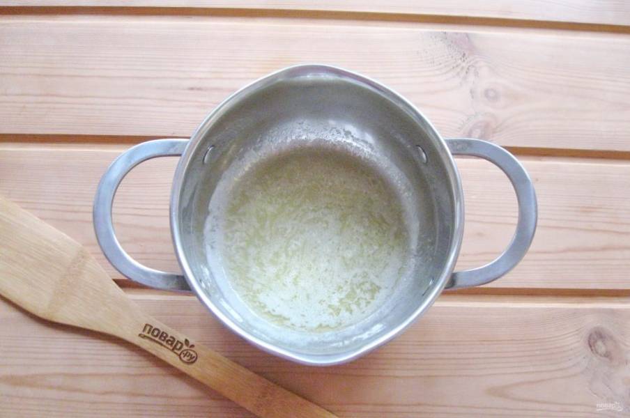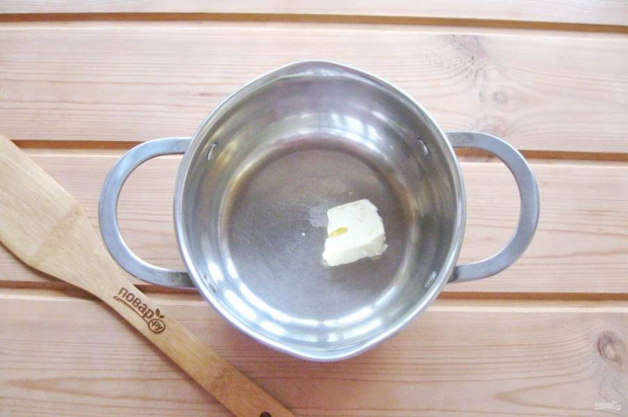 Поставьте кастрюлю на плиту и растопите сливочное масло.