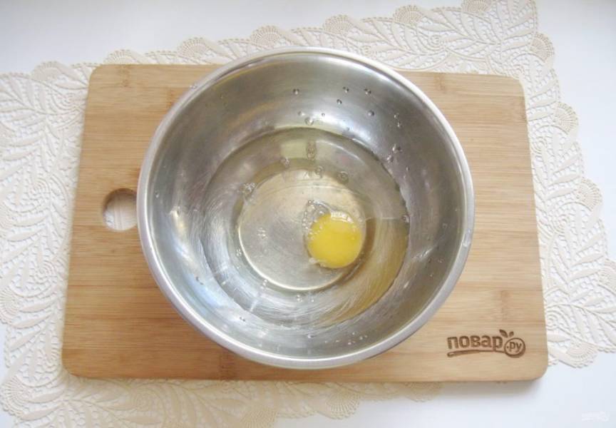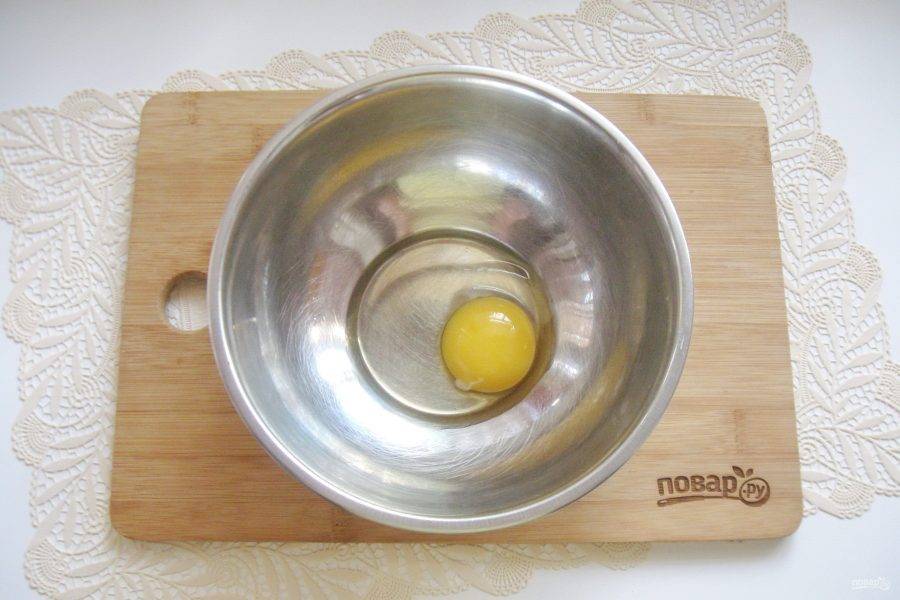Приготовьте тесто для рулетов. В миску разбейте яйцо.