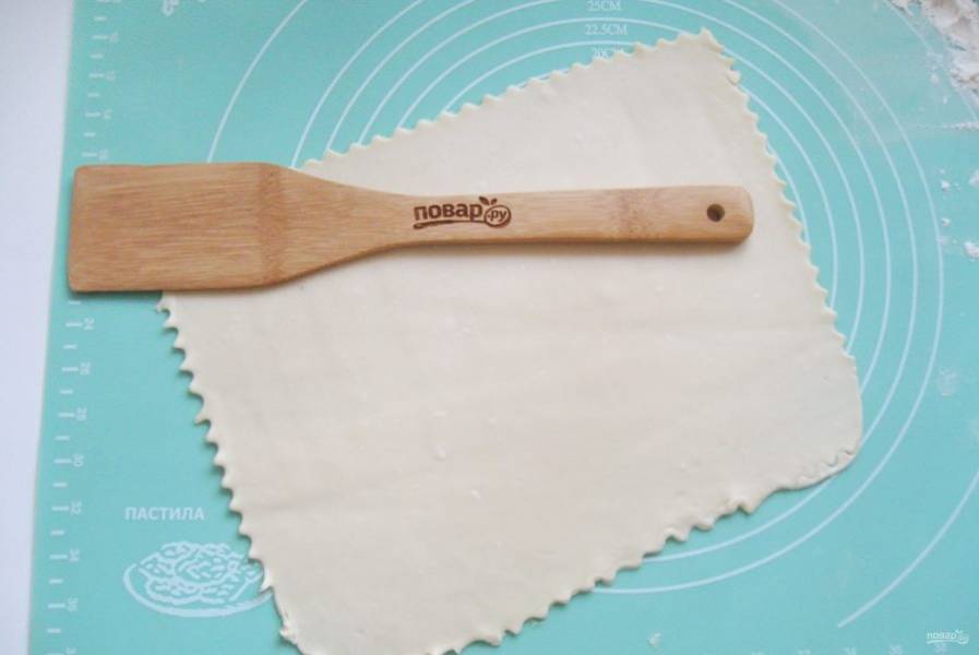 Разделите тесто на две-три части. Каждую часть очень тонко раскатайте, как на лапшу.